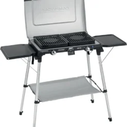 Dit camping gas kooktoestel is zeer eenvoudig te vervoeren door hem in te klappen tot een koffermodel. De uitneembare poten kunnen onder de branders worden bevestigd. Zo kan het camping kooktoestel ook worden gebruikt als tafelmodel. Eenvoudig te ontsteken met de piëzo ontsteking en stabiel af te stellen op een ongelijke ondergrond door de telescopische poten. Op de handige zijtafels hou je kruiden en kookgerei altijd bij de hand.