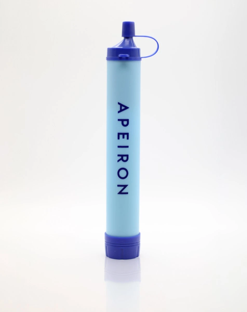 Dit filter is gekozen tot “beste innovatie van het jaar” in 2005 (Time magazine), geeft mensen de mogelijkheid om direct water te drinken uit de meest vervuilde zoetwaterbronnen. Denk aan rivieren, plassen, etc. Erg handig om bij je te hebben gedurende een avontuurlijke tocht. Apeiron is ideaal voor mensen die zich willen voorbereiden op noodsituaties of voor mensen die houden van kamperen, hiken en lange wandeltochten en direct uit meren, stroompjes of rivieren willen drinken maar niet zeker zijn of het water drinkbaar is. De Apeiron filtert de volgende bacteriën: