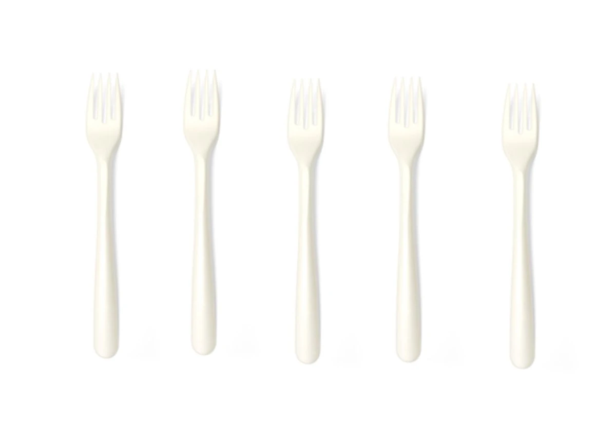- Herbruikbare witte vorken gemaakt van hernieuwbare grondstoffen.